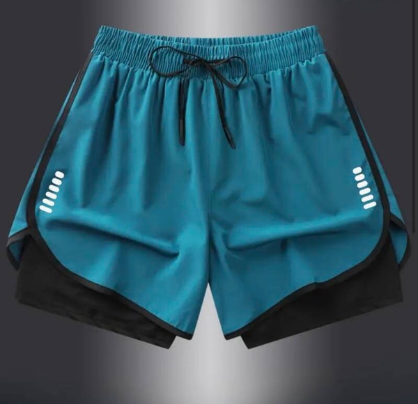 Mens summer shorts- quick dry, elastic waist drawstring with white accents. Ideal for gym, beach days, swimming, or casual summer backyard wear.