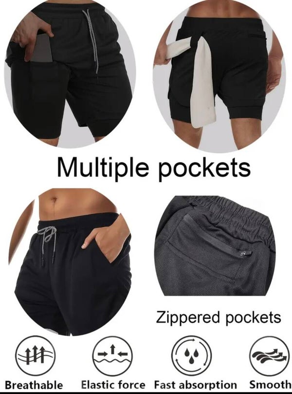 2pcs Gym Shorts- 2 in 1 quick dry breathable shorts, functional fitness shorts for men, beach wear and running.